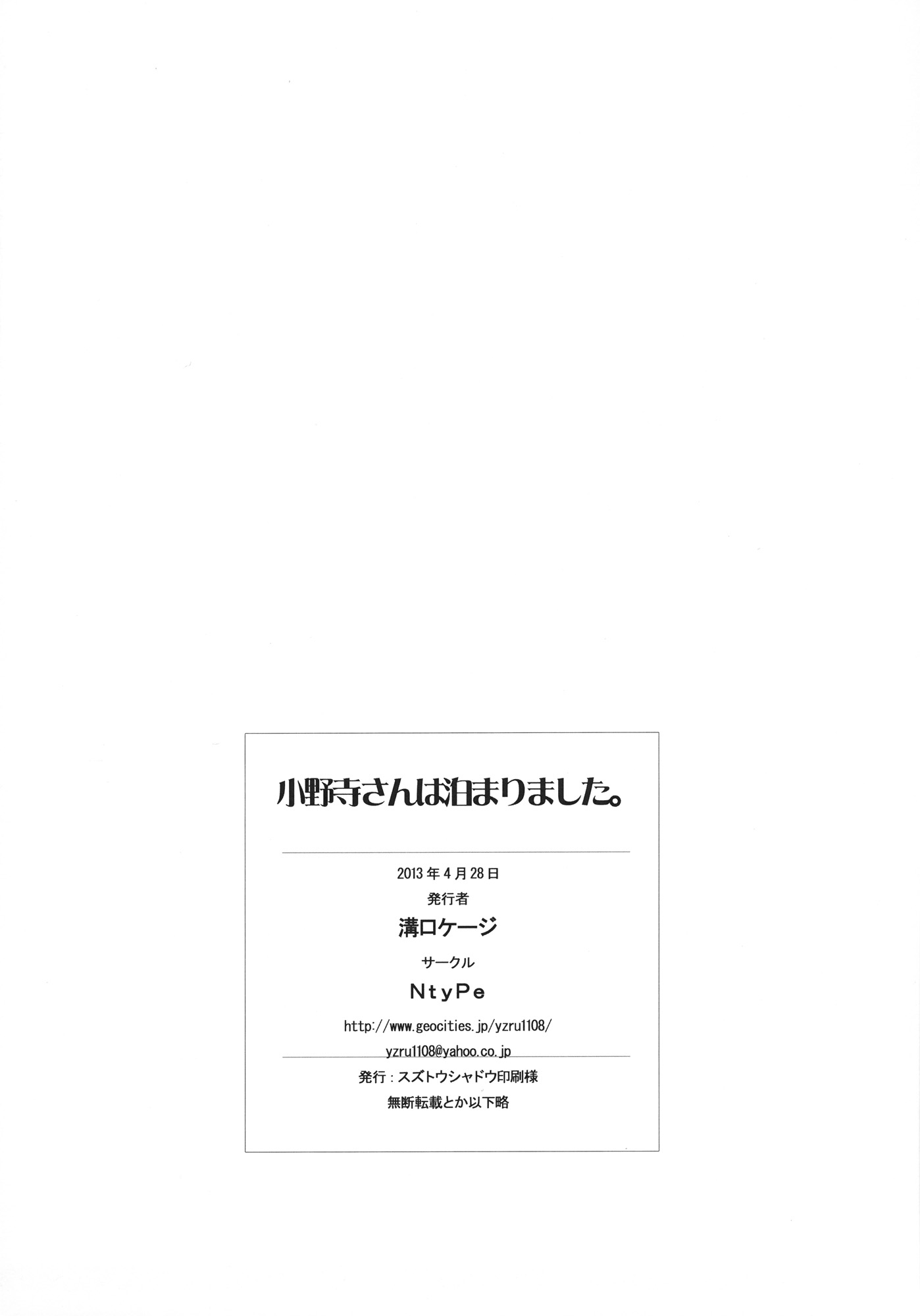 小野寺さんはお泊りしました。