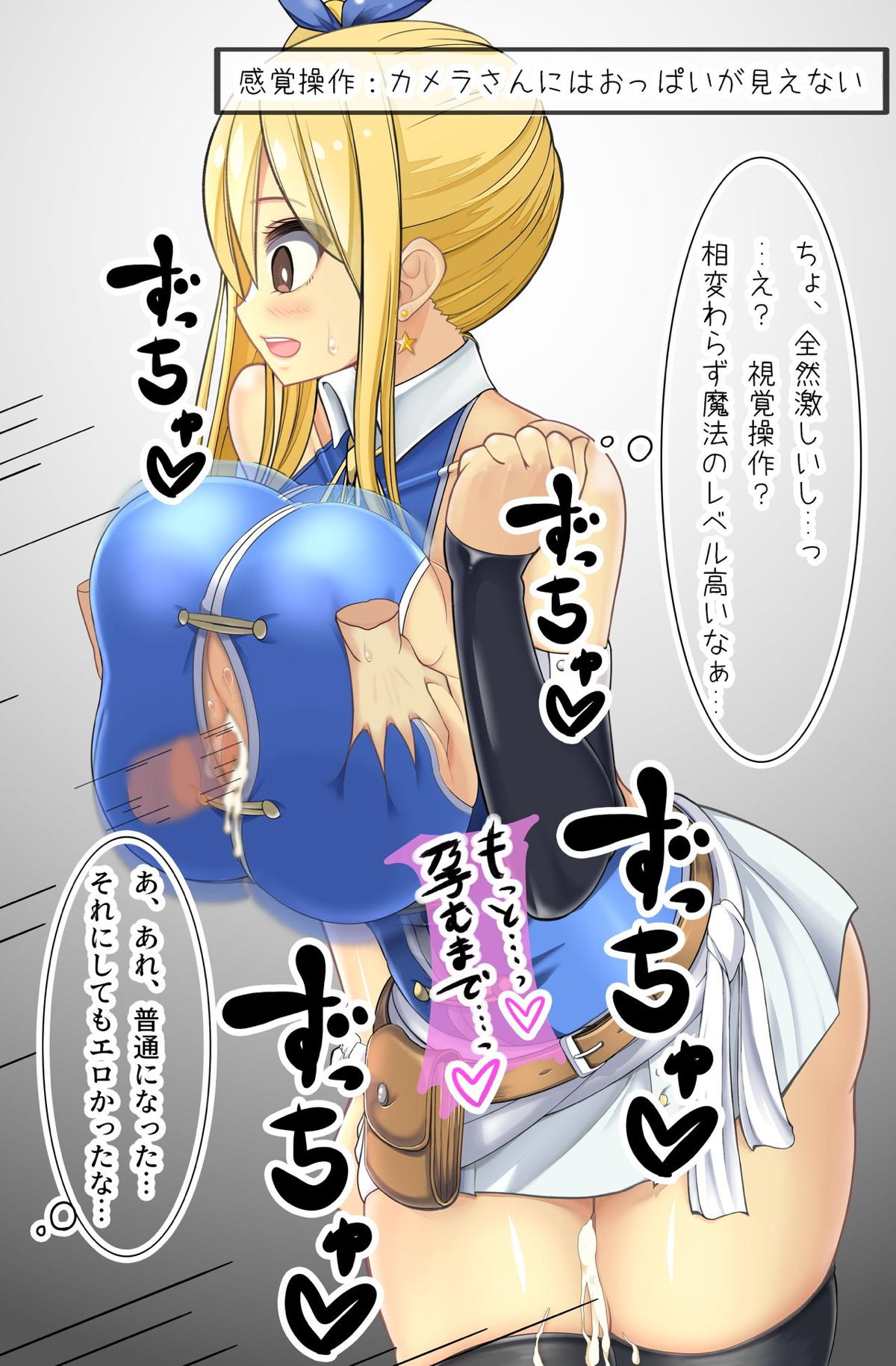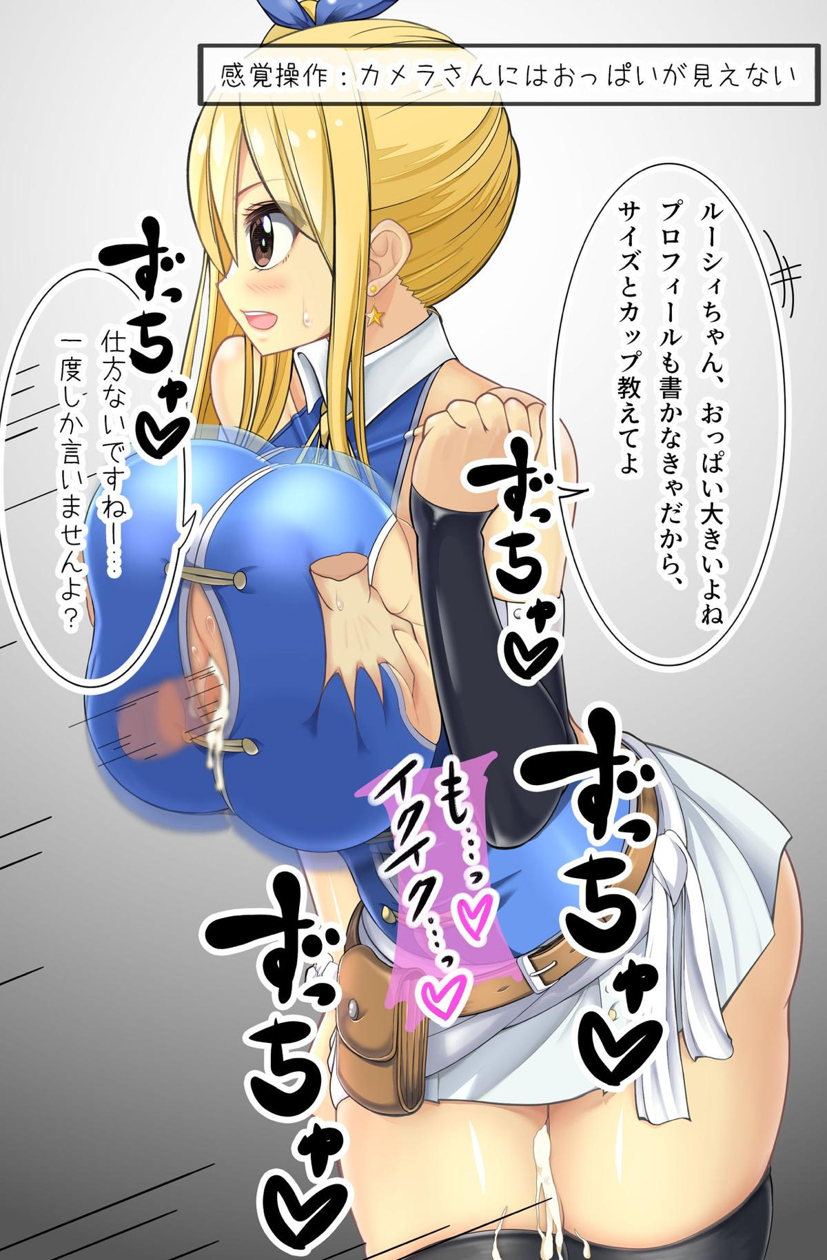私服で雑誌の撮影をしているルーシィの太ももとおっぱいに種付け