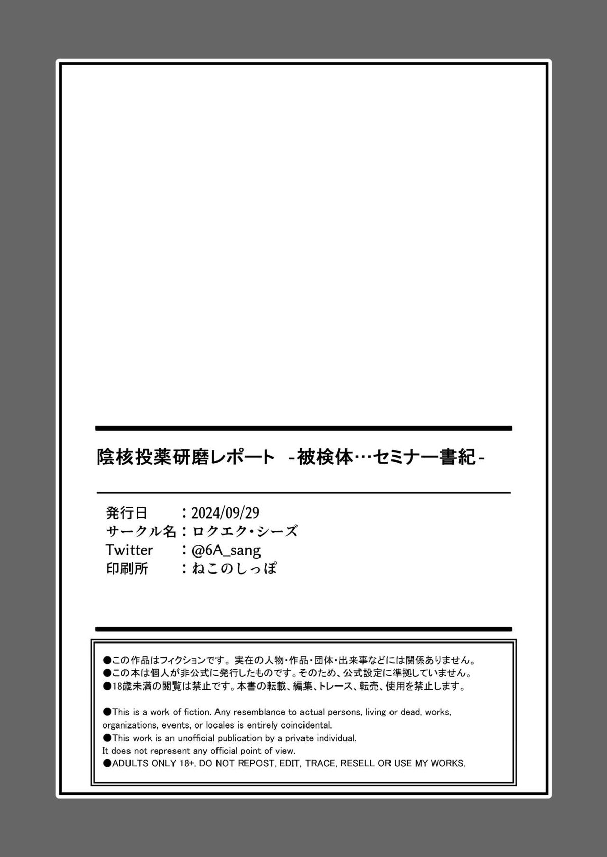 陰核投薬研磨レポート -被検体…セミナー書紀-