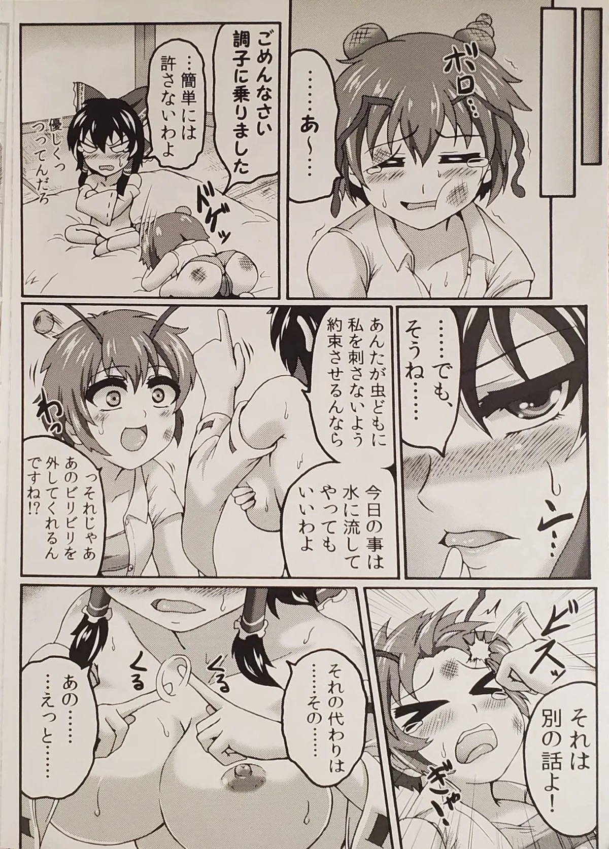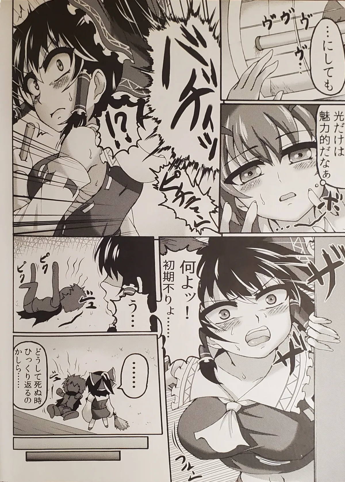 今度は霊夢の3本の指でへろへろにされる魔理沙。